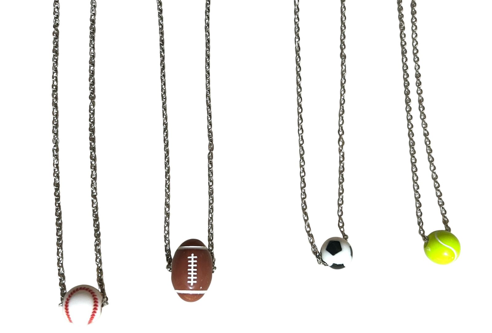 Collar de balones de resina con cadena de acero ajustable de 45 cm. Disponible en variaciones de colores. Cómpralo hoy y luce un estilo juvenil y deportivo.