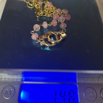 Añade este collar de cuarzo ágata rosa claro con dije de esposas en baño de oro a tu colección y disfruta de su belleza y significado. ¡Hazlo tuyo ahora!