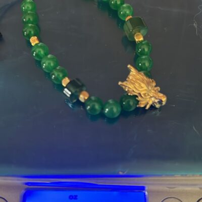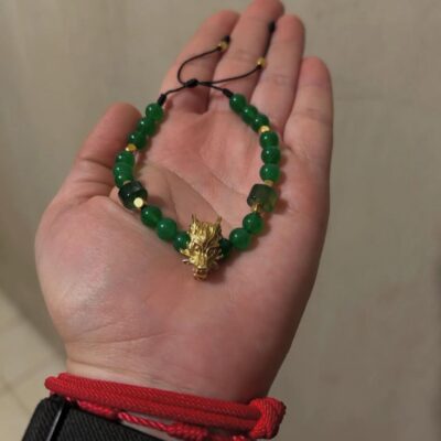 Una pieza sofisticada que combina la energía del cuarzo jade chino con la fuerza simbólica del dragón en metal, acompañado de entre piedra cúbico en chapa de oro. Con cuentas de 0.6 mm y 8 mm, montadas sobre hilo italiano de gran resistencia, esta pulsera se convierte en un accesorio elegante y duradero que proyecta equilibrio, prosperidad y estilo.